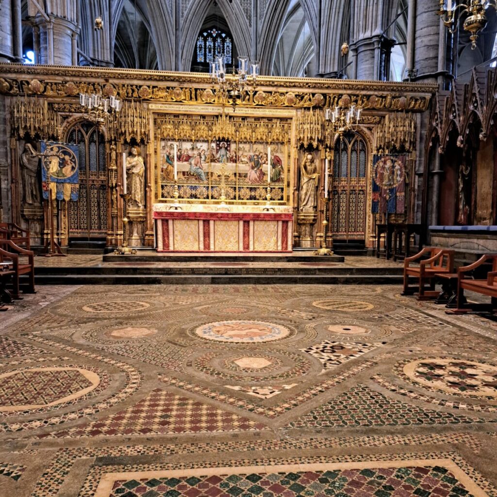 The Costmati pavement in Westminster Abbey. Photo by amanderson2 - https://www.flickr.com/photos/49399018@N00/52639897002/, CC BY 2.0, https://commons.wikimedia.org/w/index.php?curid=128111089