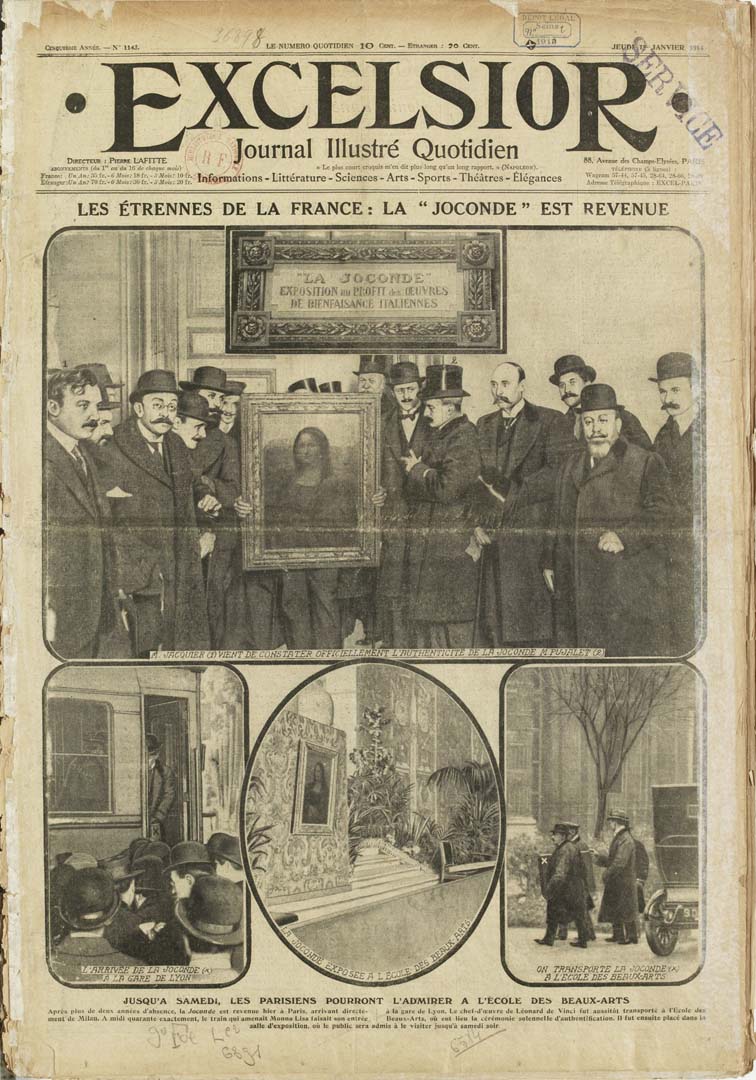 Excelsior, "La Joconde est Revenue" ("The Mona Lisa has returned"), 1 January 1914