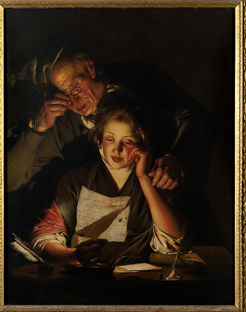 A Girl Reading a Letter with an Old Man Reading Over her Shoulder by Joseph Wright of Derby